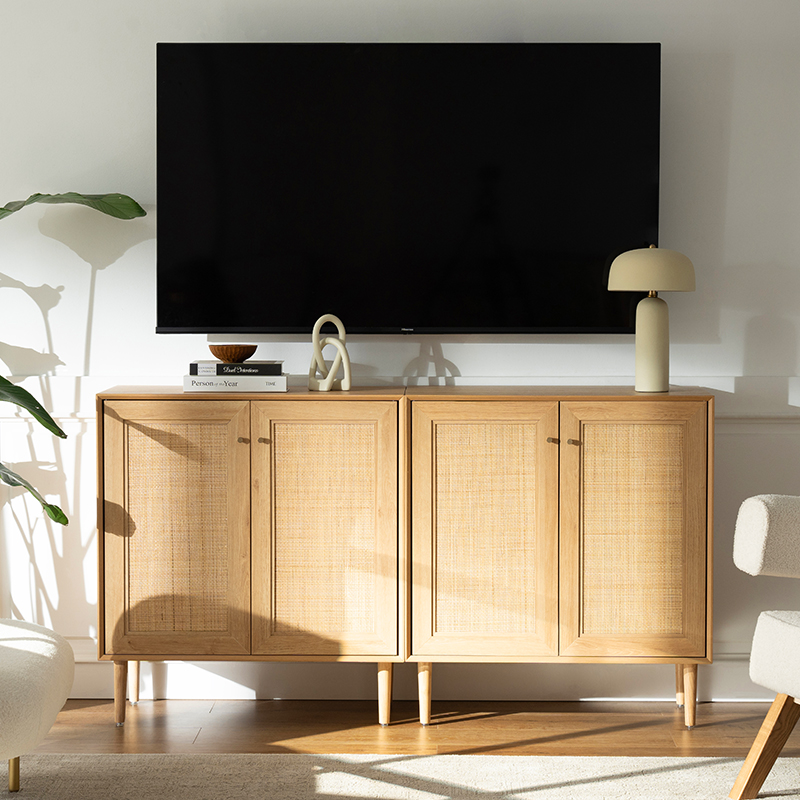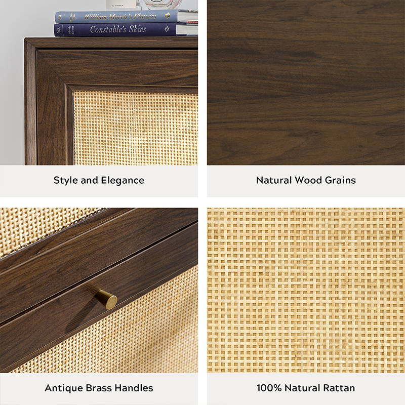 | Materiál | Doska z masívneho dreva s povrchovou úpravou MDF a obložením z pravého ratanu |