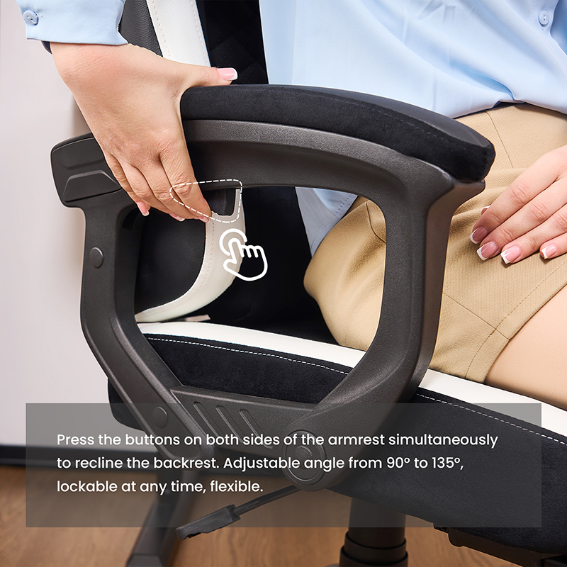 Uhol sklonu operadla stoličky: Operadlo stoličky by malo byť schopné nastaviť uhol sklonu tak, aby poskytovalo rôzne možnosti sedenia a relaxačné metódy a podporovalo prirodzenú krivku chrbta.